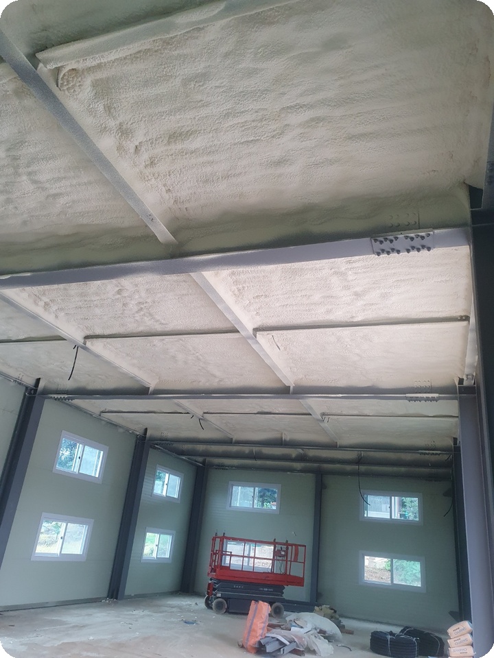 - 공법: 스프레이 방식으로, 균일하게 단열층을 형성하여 열교현상을 최소화하였습니다. 이 공법은 시공 후에도 단열재의 밀착력을 높여, 장기적인 단열 성능을 보장합니다.